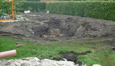 • Galerie > Teichbauprojekte unserer NaturaGart Kunden > Ostfriese > -1- Planung und Rohbau