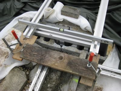 Die Stegfüße werden in die Hohlblock-/Schalungssteinen einbetoniert (Fundament 60 cm tief, mit Baustahl verstärkt). Da kann nichts mehr wackeln :-)