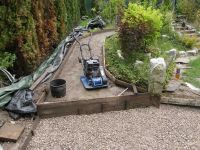Stattdessen wurden Schalungen für diverse Wege und Plätze quer durch den Garten geplant. Dafür wurde viele Kubikmeter Material abgetragen, aufgeschüttet und verdichtet.